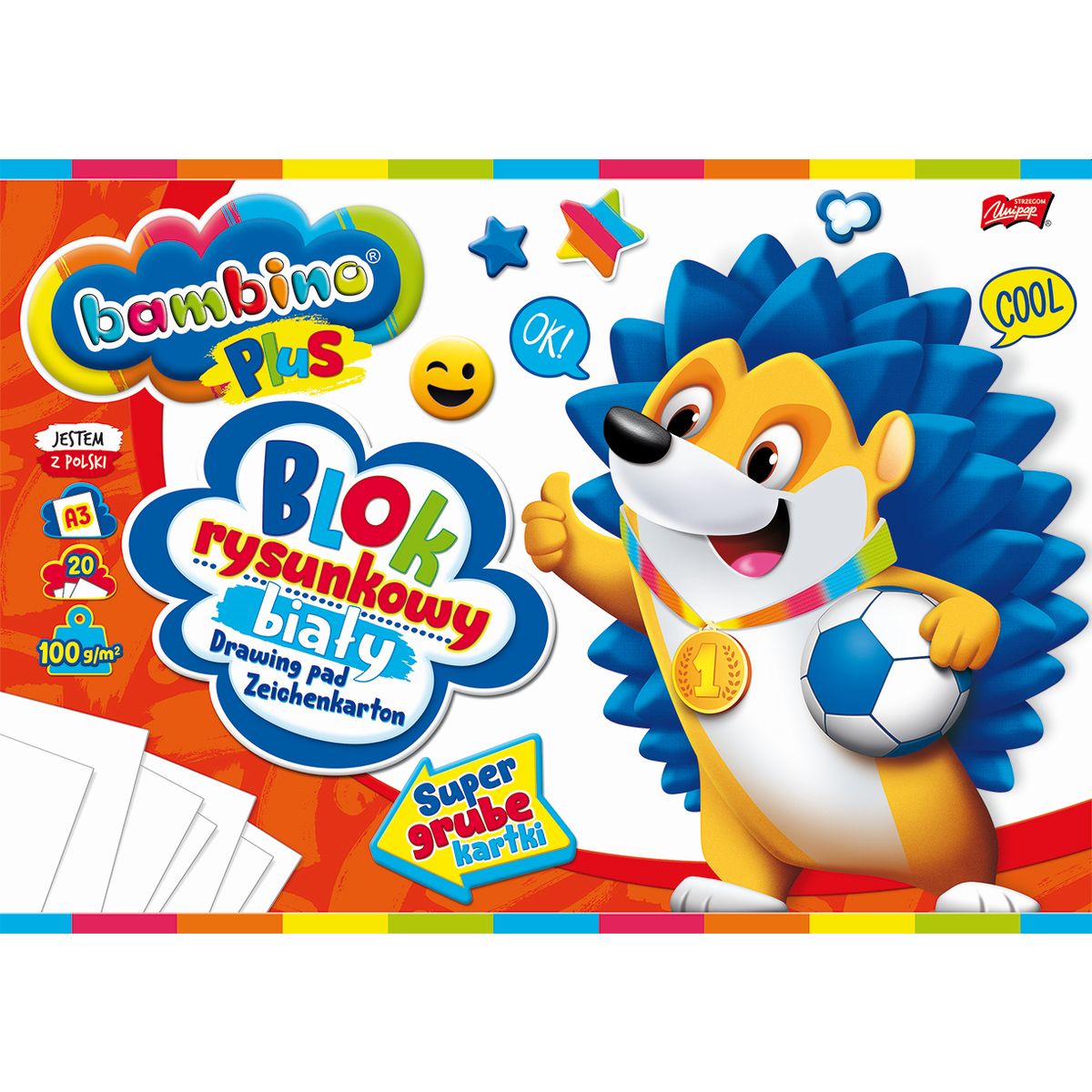 Blok rysunkowy Bambino Plus A3 biały 100g 20k [mm:] 297x420 Unipap