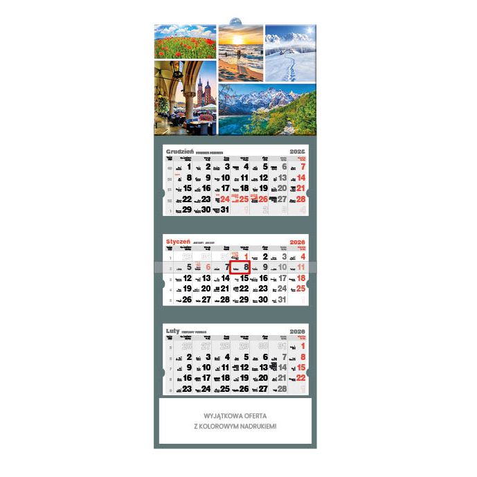 Kalendarz ścienny MAGICZNA POLSKA trójdzielne 320mm x 855mm Jotan (T70)