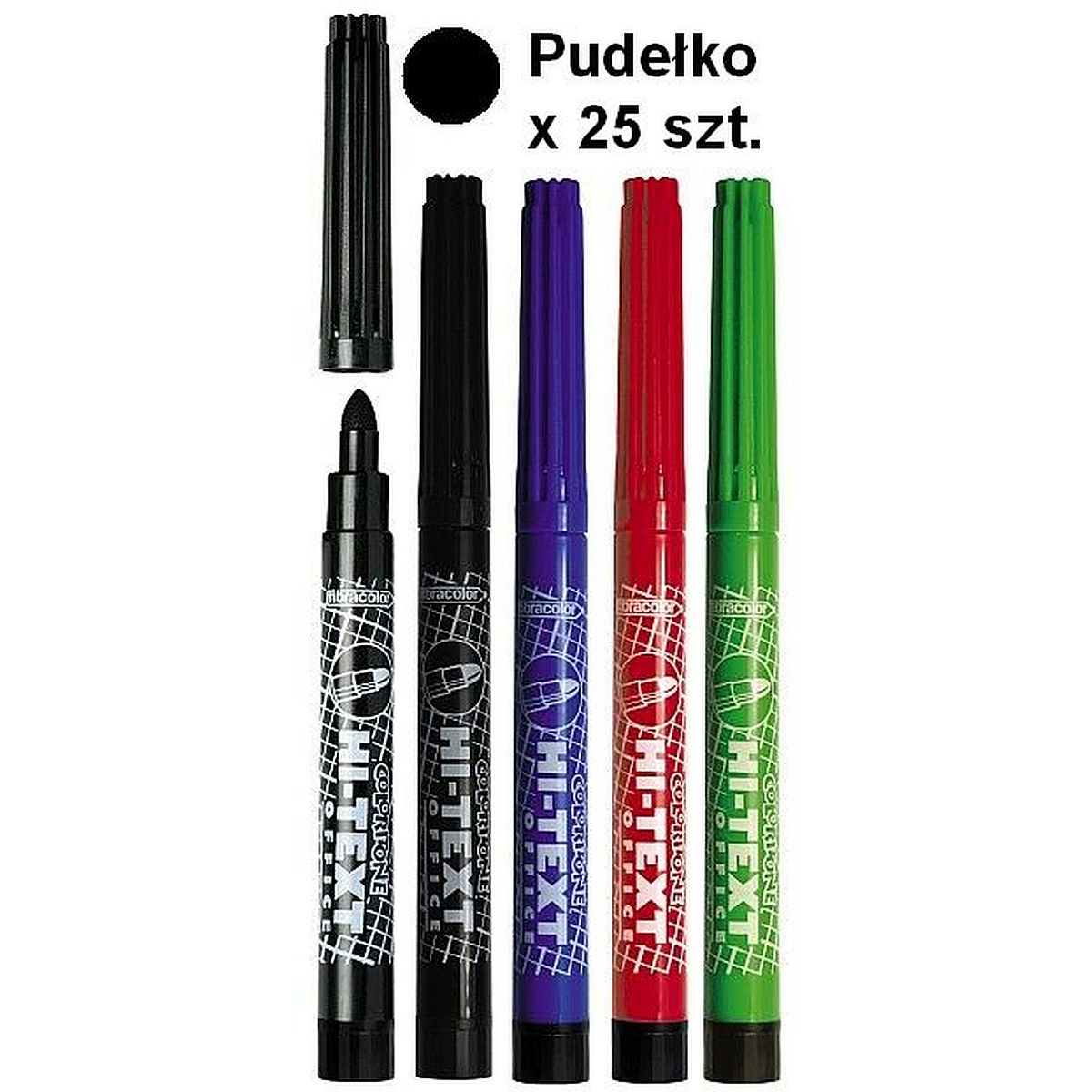 z okrągłą końcówką 4,5 mm, linia do 6 mm, tusz czarny o intensywnej barwie, łatwo zmywalny z rąk i materiałów, firmowy nadruk, zatyczka wentylacyjna zapobiegająca wyciekaniu tuszu, pudełko 25 szt. w jednym kolorze, produkcja : Fibracolor Włochy, certyfikat CE