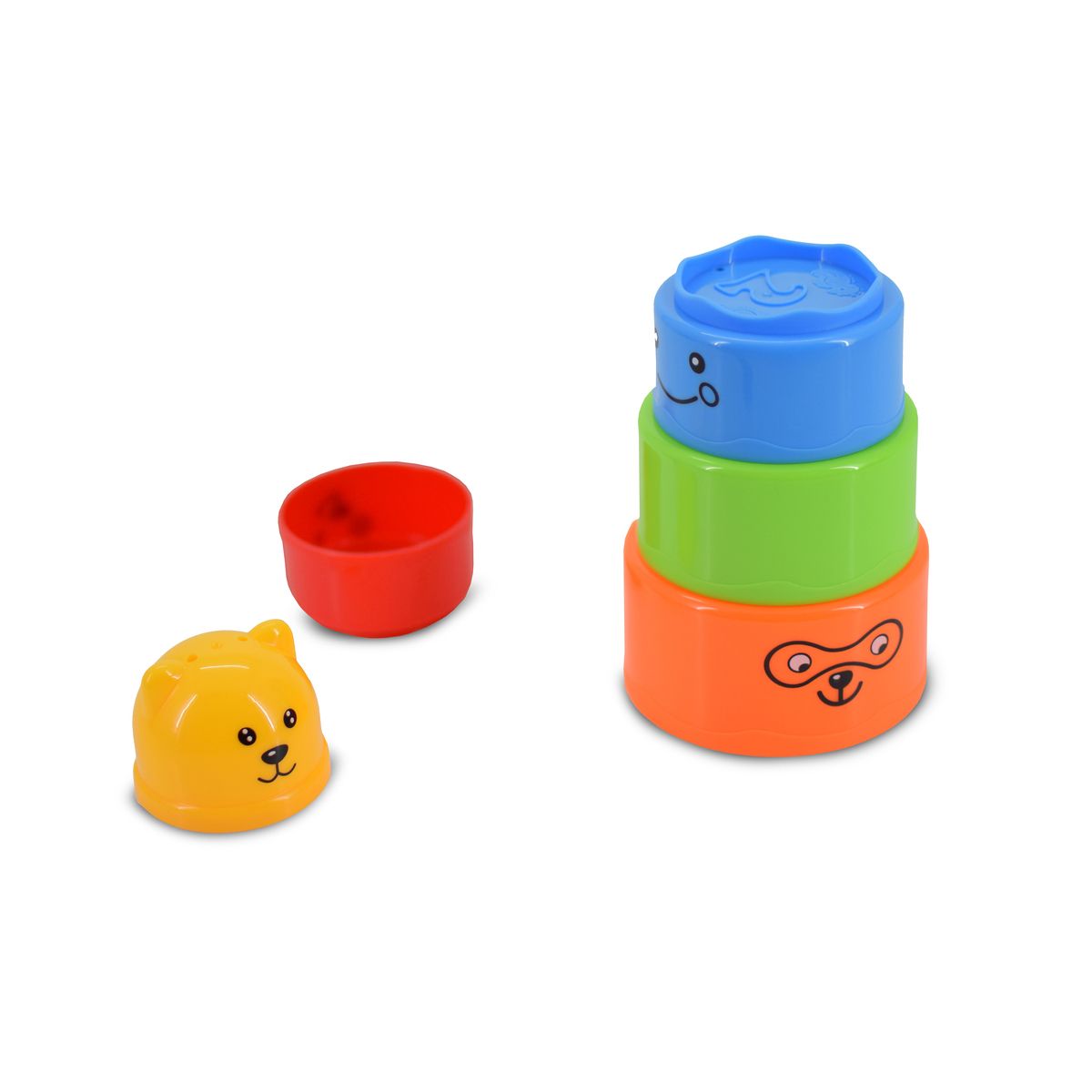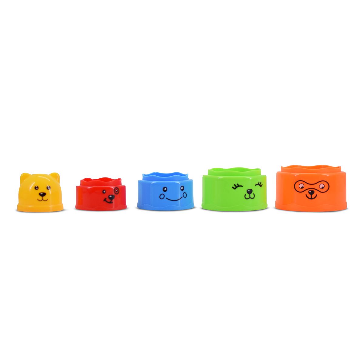 Kolorowe kubeczki z kolekcji Edu&Fun będą idealne do zabawy podczas kąpieli lub w piaskownicy. Zestaw zawiera 4 kubeczki oraz głowę misia. Kubeczki różnią się rozmiarem, kolorem i delikatną fakturą. Na spodzie kubeczków są są cyferki oraz zwierzątka do odciskania w piasku. Dodatkowo każdy kubeczek ma małe dziurki na dnie, które świetnie sprawdzają się w kąpieli - delikatnie leci przez nie woda. Kubeczki są lekkie i łatwe do uchwycenia dla maluszka.