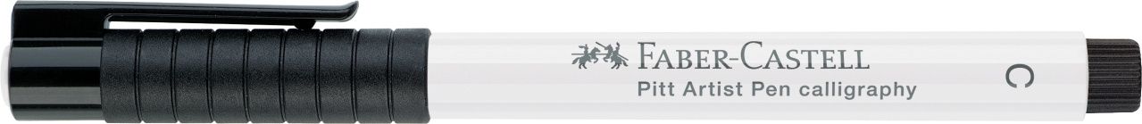 Pisak artystyczny Faber-Castell Pitt Artist Pen ze ściętą końcówką C 2,5 mm do kaligrafii w kolorze 101 (białym). To połączenie zalet tradycyjnych rysunków wykonywanych tuszem z nowoczesnym, łatwym w użyciu narzędziem. Tusz nadaje rysunkom wyrazistości i trwałości, dając jednocześnie możliwość połączenia z wieloma innymi technikami. Pisak opracowany został z profesjonalnymi artystami zajmującymi się liternictwem i kaligrafią. Idealny do kreatywnego tworzenia liter. Doskonały również do szkicowania, rysowania i malowania. Zawiera pigmentowany tusz indyjski o neutralnym PH, bez zawartości kwasów. Jest bezzapachowy i odporny na działanie światła. Po wyschnięciu wodoodporny, nie rozmazuje się na papierze i nie przebija na drugą stronę. Uwaga - ze względu na tusz pigmentowy pisak powinien być przechowywany w pozycji poziomej.
