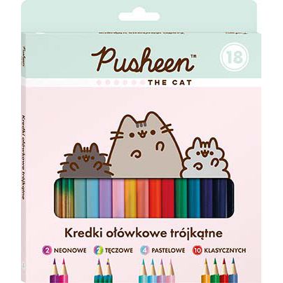 Kredki ołówkowe Pusheen 18 k ( 10 std, 2 neon+2 tęcza+ 5903235652042 18 kol. St.Right (4 pastel)
