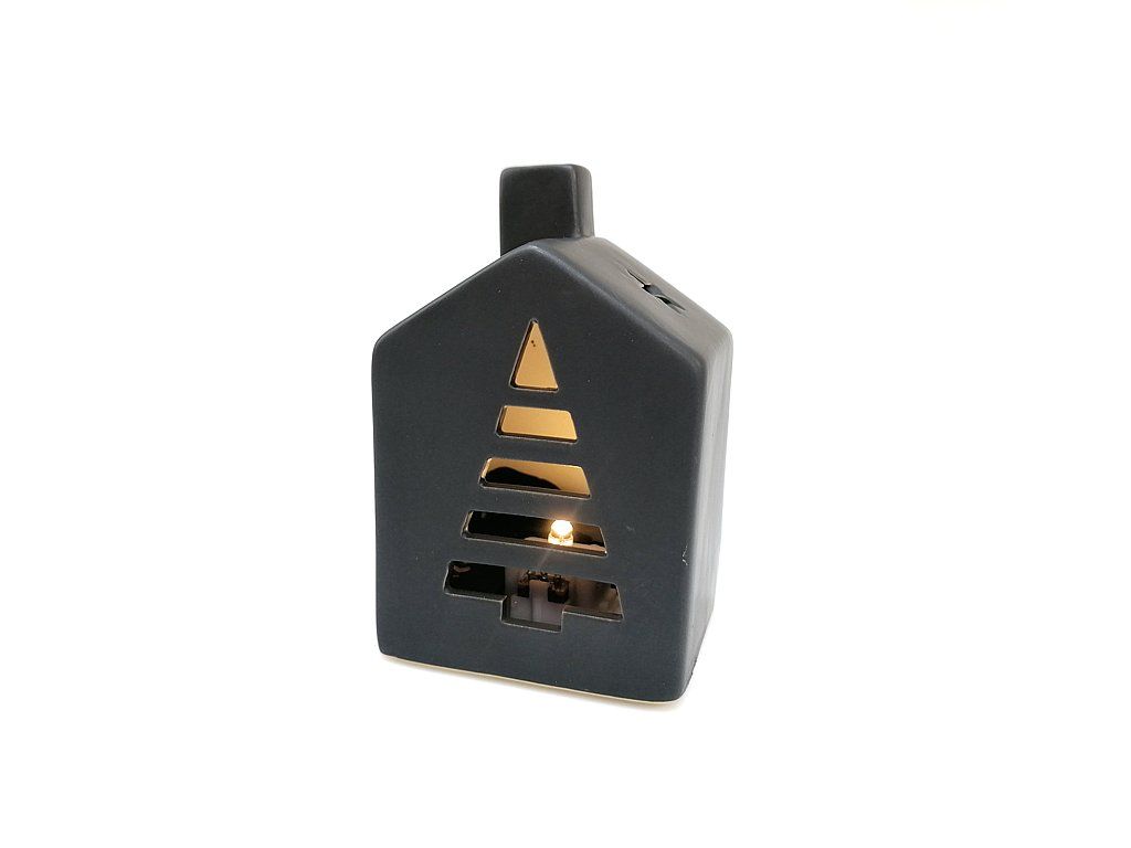 CERAMICZNA DEKORACJA DOMEK LED CZERŃ ; WYM. 6.2*5.6*9.9cm ; 72;