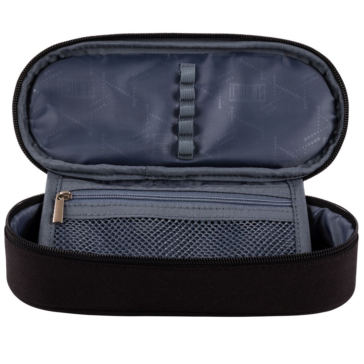 - dodatkowa klapka z miejscem na przybory piśmiennicze oraz kieszonką zapinaną na suwak