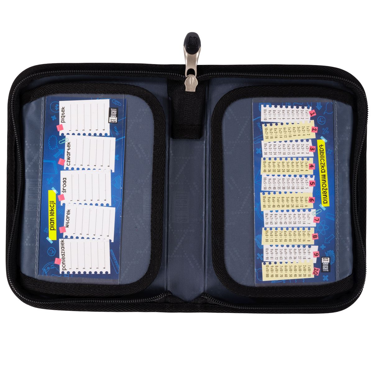 - posiada przegrody i liczne mocowania ułatwiające organizację przyborów szkolnych