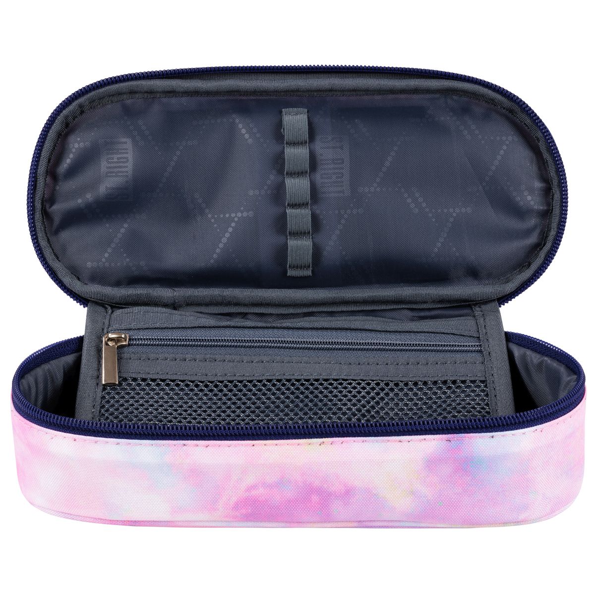 - dodatkowa klapka z miejscem na przybory piśmiennicze oraz kieszonką zapinaną na suwak