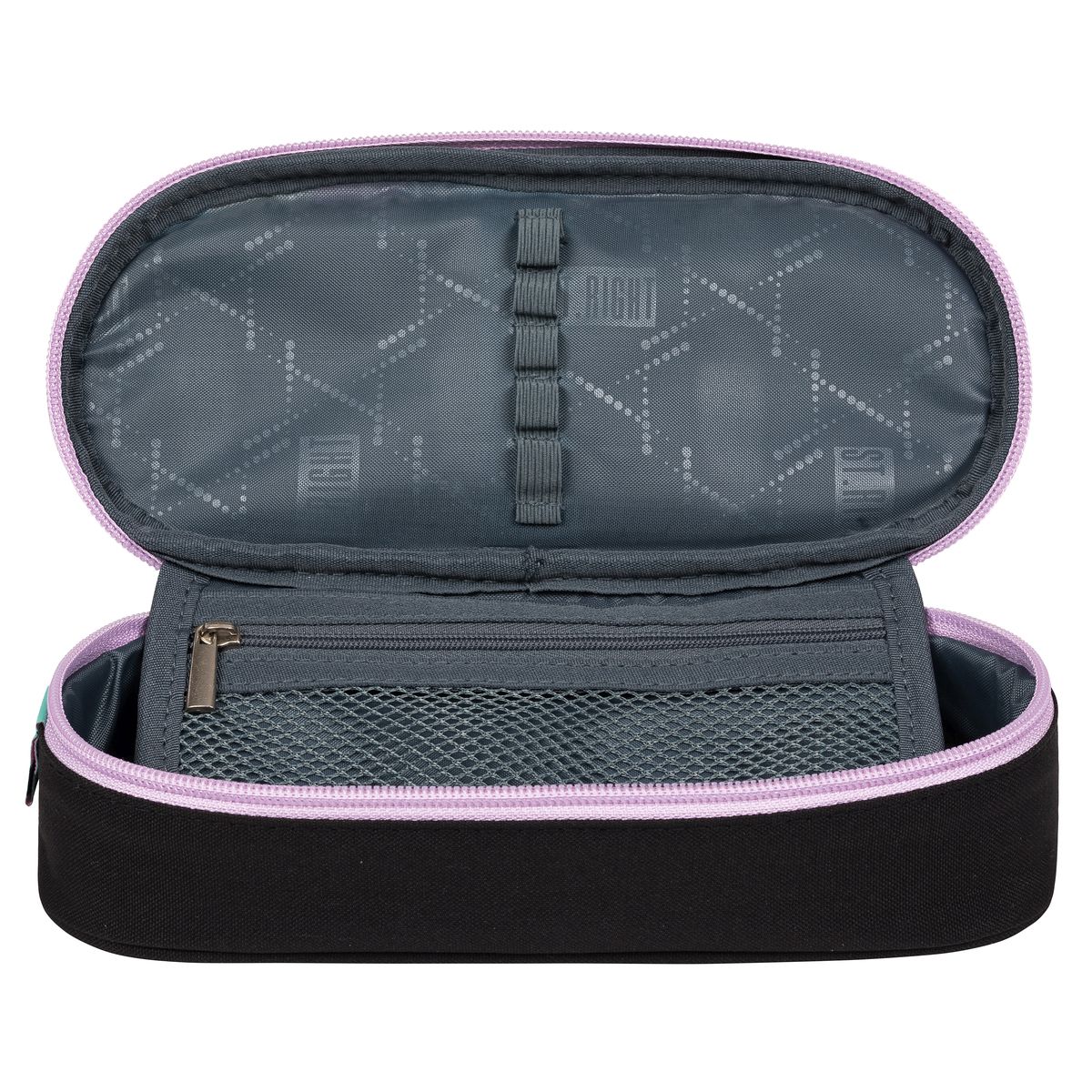 - dodatkowa klapka z miejscem na przybory piśmiennicze oraz kieszonką zapinaną na suwak