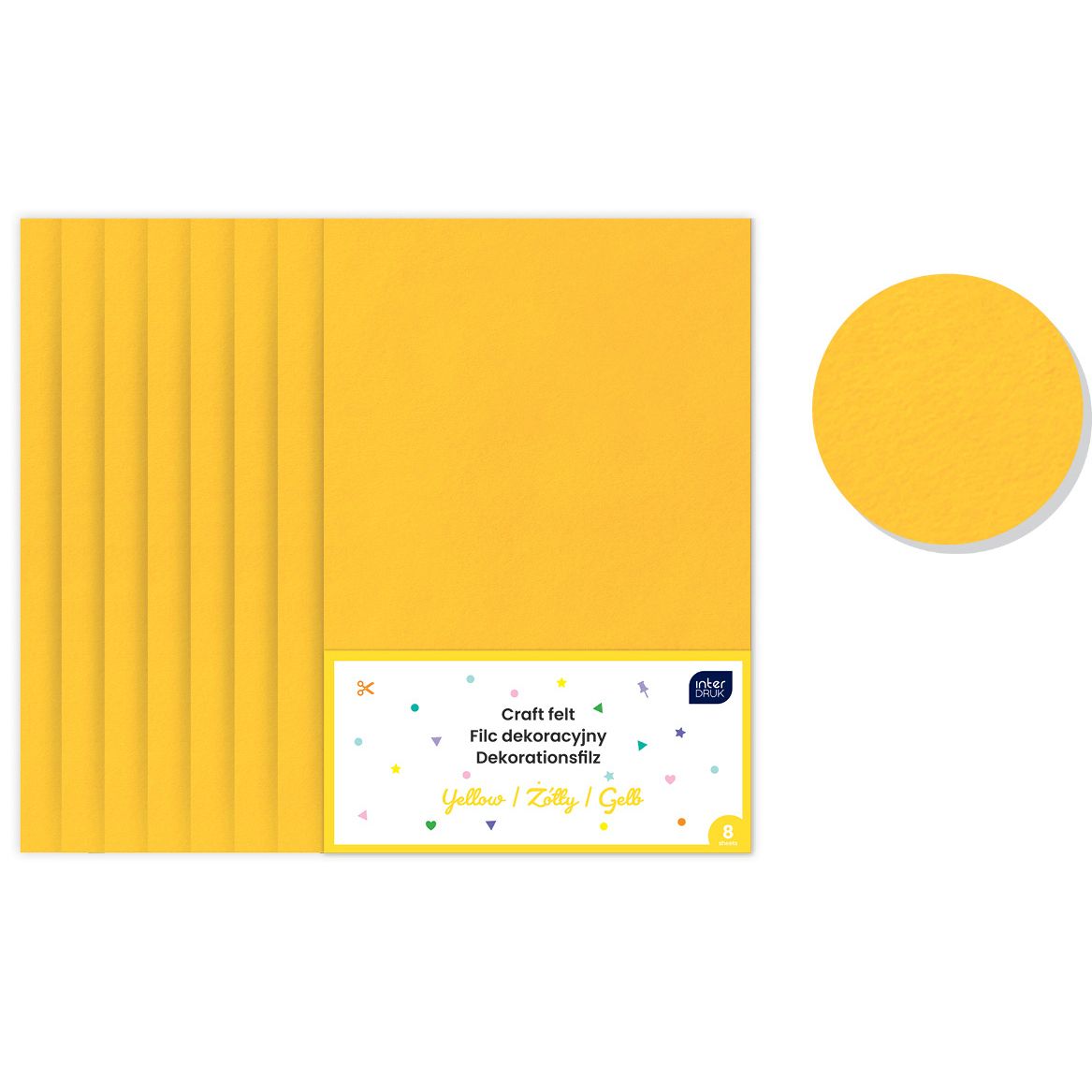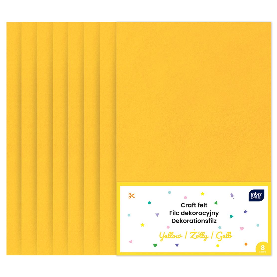 Opakowanie zawiera 8 arkuszy filców w rozmiarze A4 w żółtym kolorze.