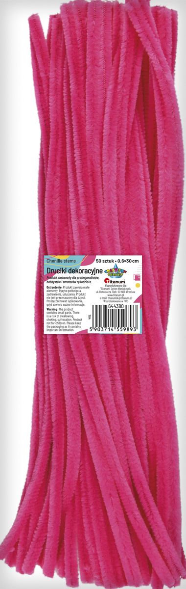 Druciki kreatywne, kolor: różowe, długość: 30 cm, szerokość: 0,6 cm. 50 sztuk.