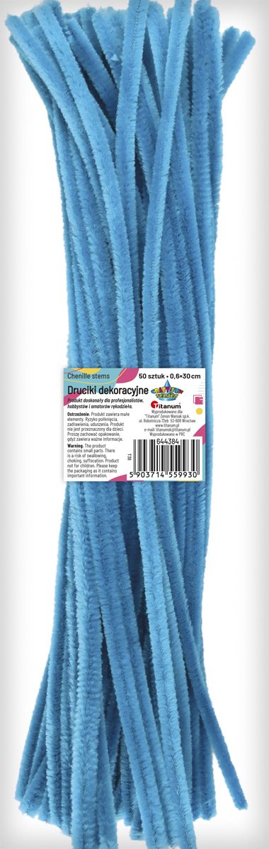 Druciki kreatywne, kolor: turkusowe, długość: 30 cm, szerokość: 0,6 cm. 50 sztuk.