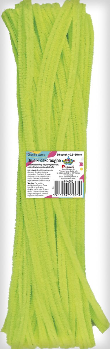 Druciki kreatywne, kolor: cytrynowe, długość: 30 cm, szerokość: 0,6 cm. 50 sztuk.