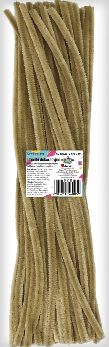 Druciki kreatywne, kolor: beżowe, długość: 30 cm, szerokość: 0,6 cm. 50 sztuk.