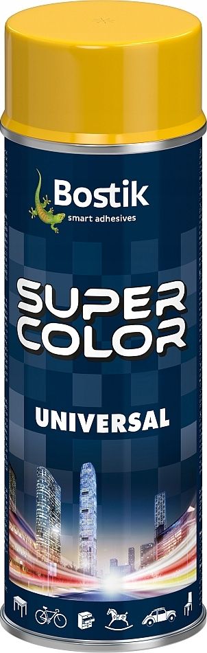BOSTIK SUPER COLOR UNIVERSAL - Lakier w aerozolu ogólnego zastosowania. Dzięki trwałej i skutecznej na wielu powierzchniach formule wykorzystasz go do wielu prac naprawczych, renowacyjnych i remontowych. Lakier uniwersalny w sprayu marki BOSTIK świetnie sprawdza się na niektórych tworzywach sztucznych i takich jak np. ceramika, drewno, beton, kamień itp. Duży wybór opcji kolorystycznych sprawia, że lakiery uniwersalne z naszej oferty nie sprawią kłopotu z dopasowaniem ich do barwy powierzchni, która ma pokryć.