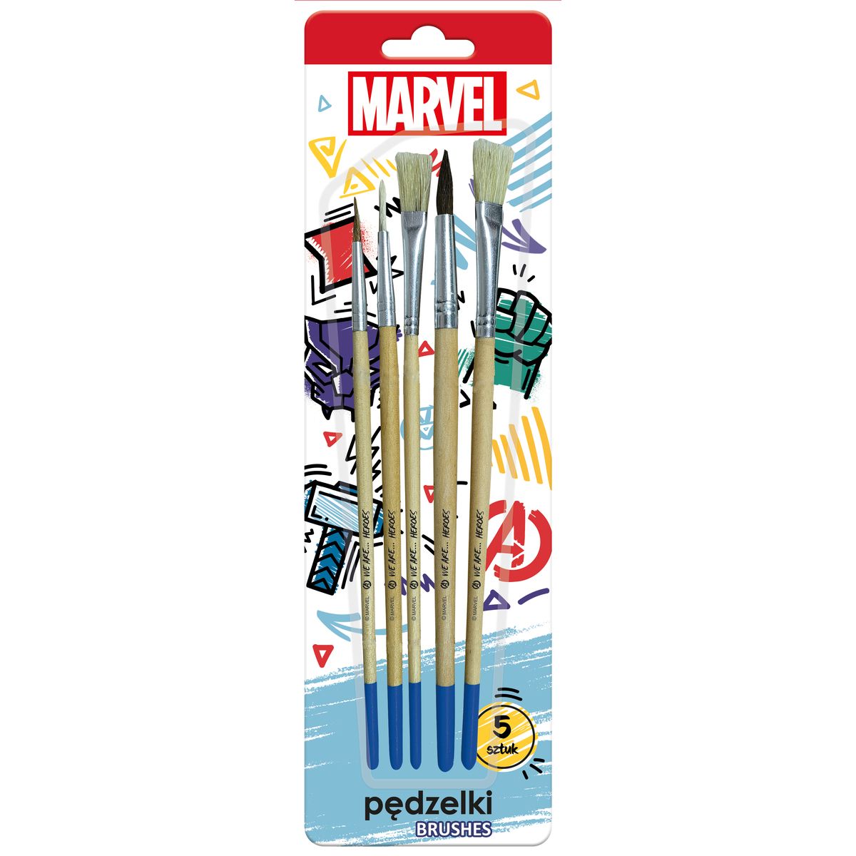 Pędzelki z naturalnego włosia Avengers 5szt