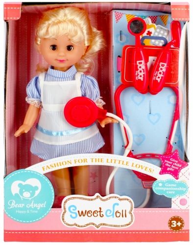 Zalety produktu: rozwija kreatywność dziecka, zabawa lalką Lekarz przeniesie dziecko w świat dorosłych gdzie zapozna się z zawodem doktora a dodatkowe akcesoria pomogą jeszcze bardziej poznać dziecku ten zawód. Lalka w odsłonie Lekarza , posiada ruchome ręce, głowę i nogi. Zawartość zestawu: Lalka 35cm,słuchawki lekarskie, akcesoria lekarskie. Całość wykonana z plastiku, materiału oraz sztucznego włosia. Wymiary/waga/baterie: wymiary produktu (wys.)[cm]: 35 cm, wymiar opakowania (dł. x wys. x gł.) [cm]: 26x34x9, waga produktu bez opakowania [kg]: 0,27 kg, waga produktu w opakowaniu [kg]: 0,43 kg, nie wymaga zasilania bateriami. Produkt przeznaczony dla dzieci w wieku: 3+. Pakowany w kartonik z okienkiem. W kartonie zbiorczym po 36 szt.