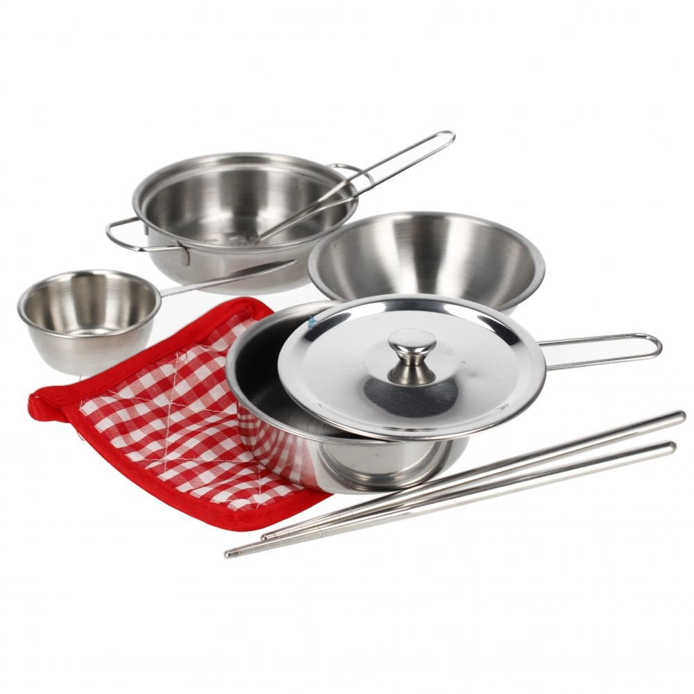 Zalety produktu: zabawa w przyjęcie, dziecko rozwija swoje zdolności manualne. Zestaw naczyń kuchennych metalowych MEGA CREATIVE niezbędny do przyjęcia gości. Poczęstuj swoich gości obiadem, kolacją zaserwowanymi w swojej pięknej zastawie! Zawartość zestawu: 1x rondelek z rączką,, 1x ściereczka, 2x garnek, 1x pokrywka, 1x miseczka, 1x podbierak, 1x kpl. pałeczek. Całość wykonana z metalu i materiału. Wymiary/waga/baterie: wymiary produktu (dł. x wys. x gł.) garnek duży -14x3x10, wymiary opakowania (dł. x wys. x gł.) [cm]: 21x34x5 waga produktu bez opakowania [kg]: 0,17 kg, waga produktu w opakowaniu [kg]: 0,19 kg, nie wymaga zasilania bateriami. Produkt przeznaczony dla dzieci w wieku: 3+. Pakowany w foliową torbę z uszami. W kartonie zbiorczym po 120/240 szt.