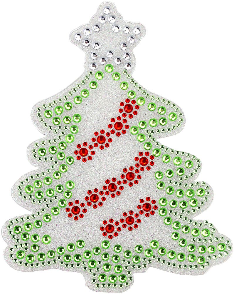 Kryształki samoprzylepne, wzór: choinka, wymiary: 100x127 mm. 1 sztuka.