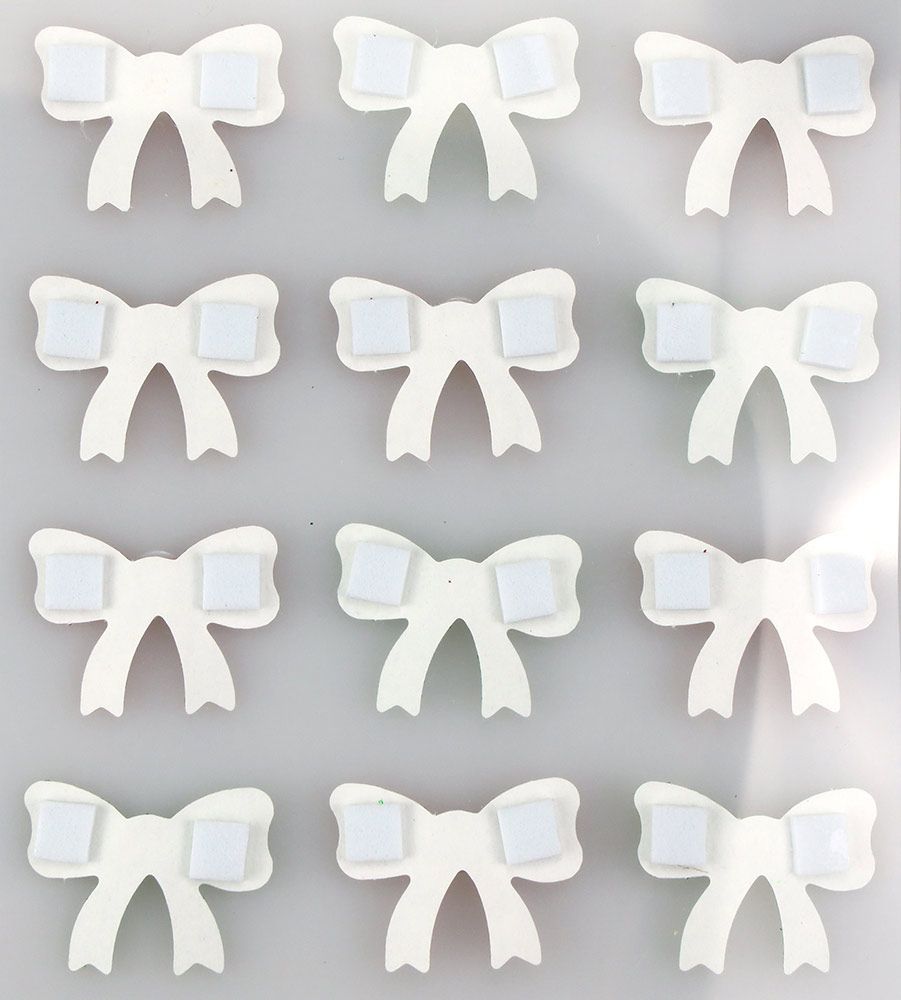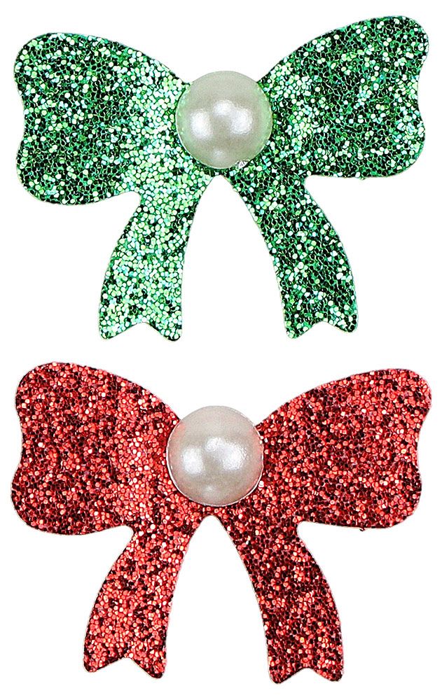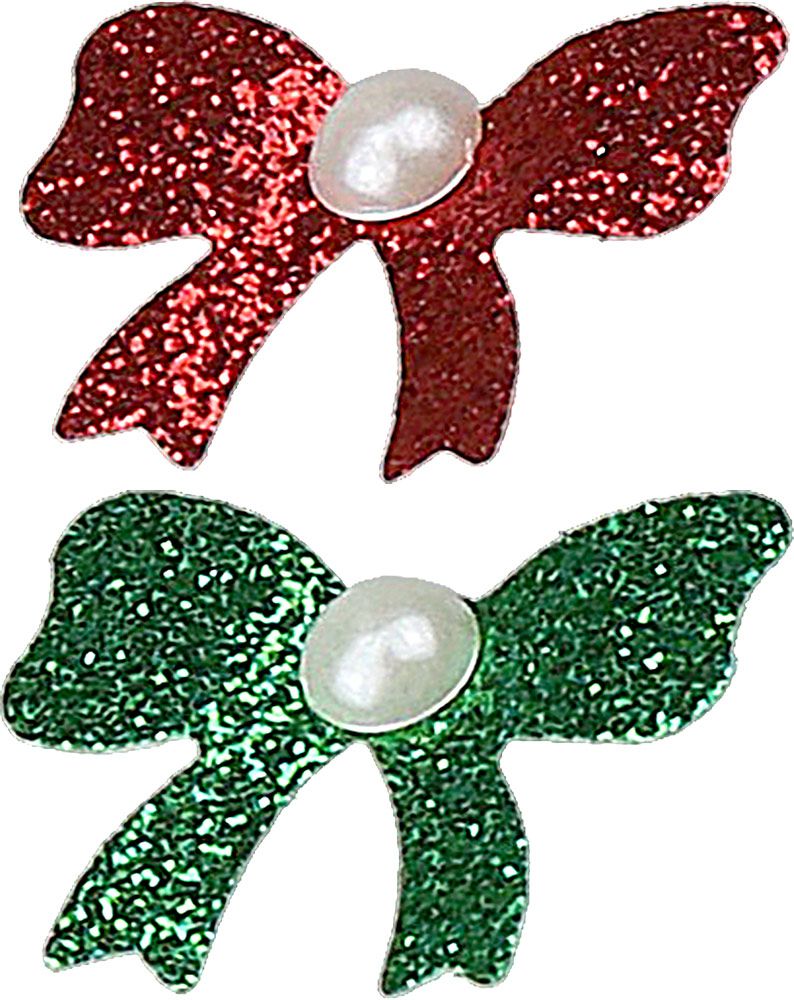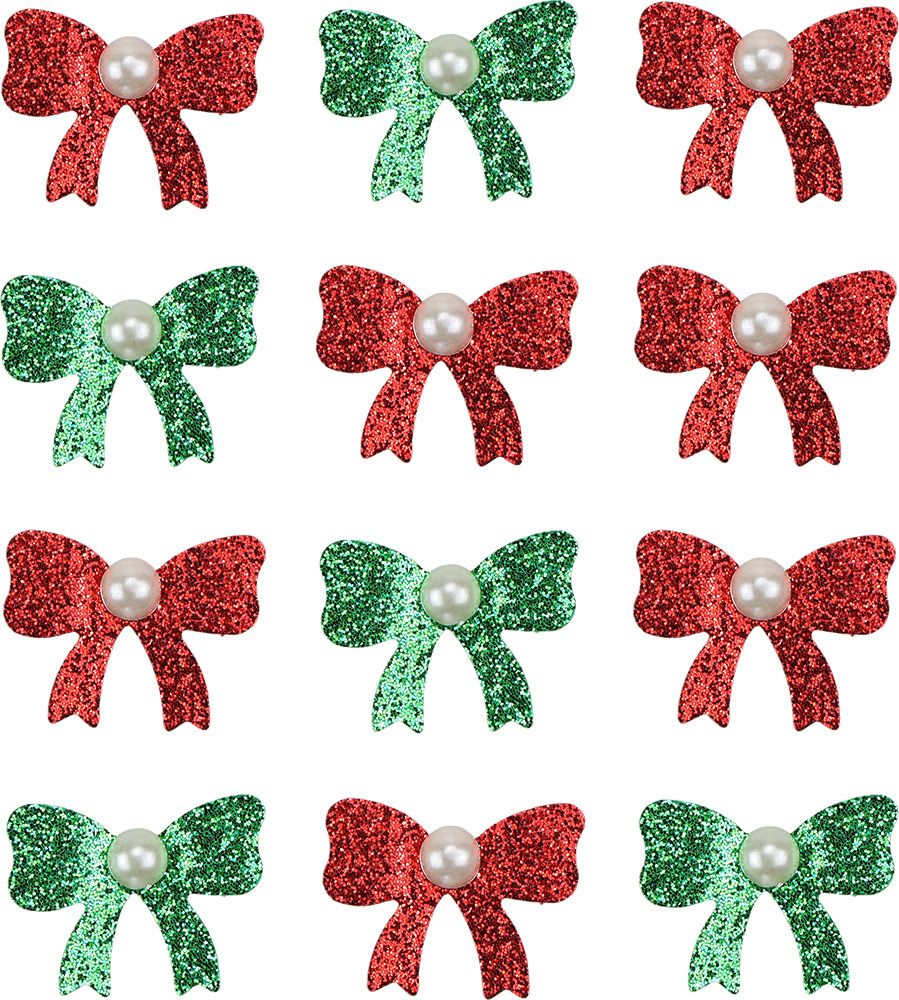 Dekoracje samoprzylepne, papierowe 3D, wzór: kokardki 25 x 20 mm z perełką, ciemnoczerwone, ciemnozielone. 12 sztuk.