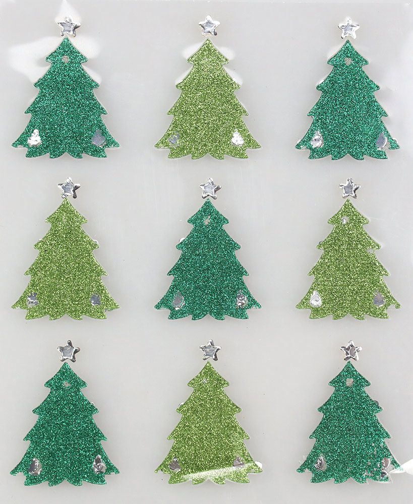 Kryształki samoprzylepne, wzór: choinki, wymiary: 28x35 mm. 9 szt.