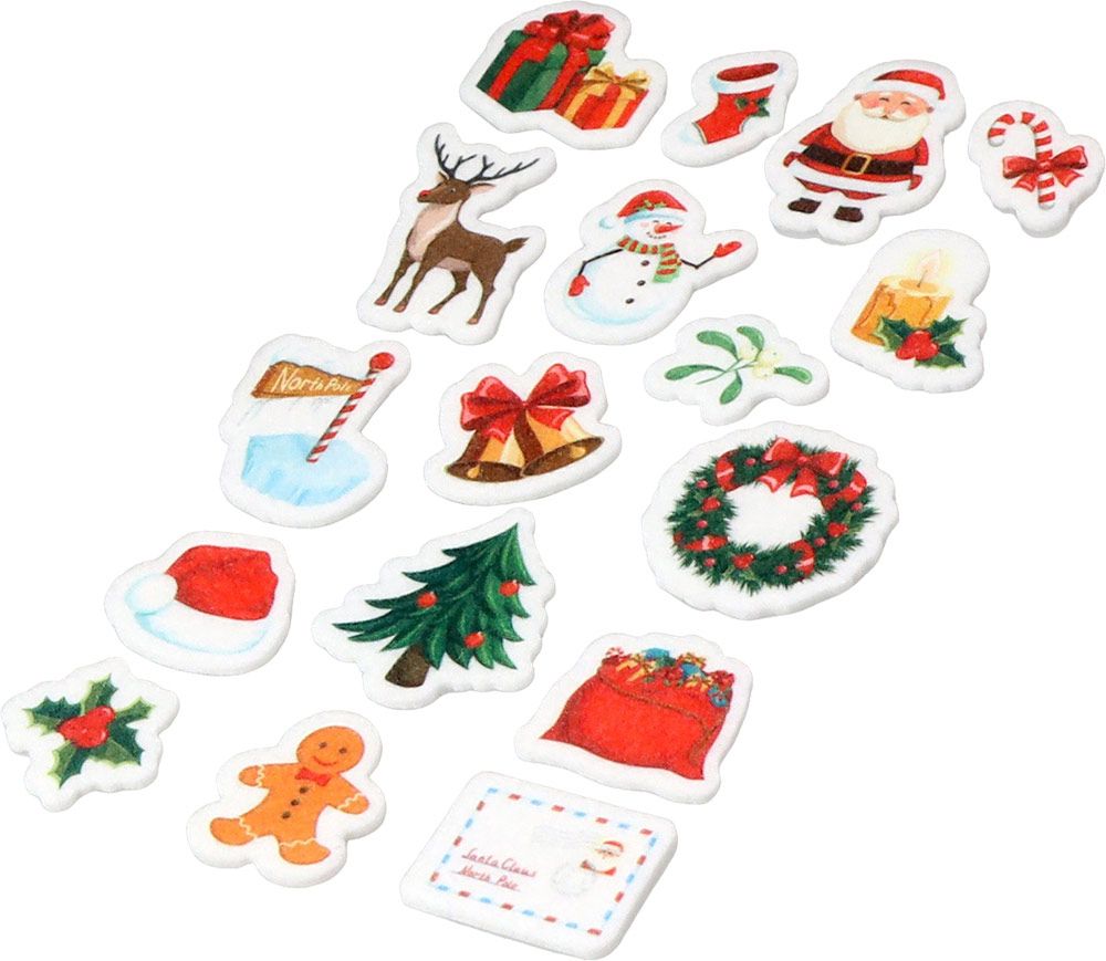 Naklejki filcowe, wzory: Mikołaj, renifer, choinka, wianek, bałwanek, prezent, list, bombkii. Mix rozmiarów i kolorów. 9 sztuk.