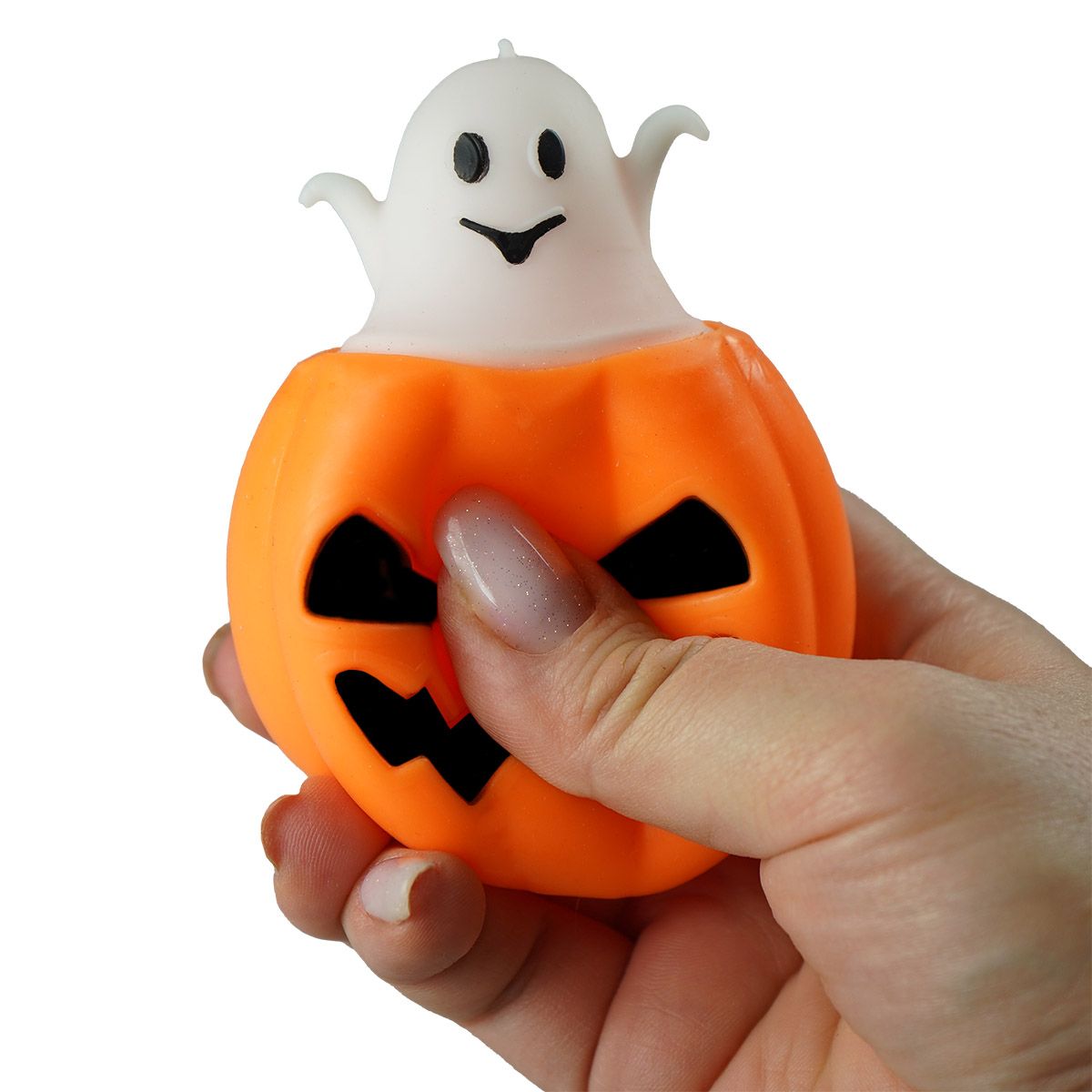 Zabawka antystresowa w formie dyni z ukrytym duszkiem to idealny gadżet na Halloween! Wystarczy nacisnąć dynię, a z jej wnętrza wyskakuje sympatyczny duch – efekt zaskoczenia gwarantowany. Doskonała do ściskania, zabawy i… rozładowywania emocji w klimacie Halloween.
