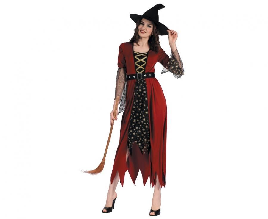 Kostium Zestaw dla dorosłych Czerwona Czarownica (sukienka, kapelusz, pasek ), rozm. S Godan (SL-CZCS)