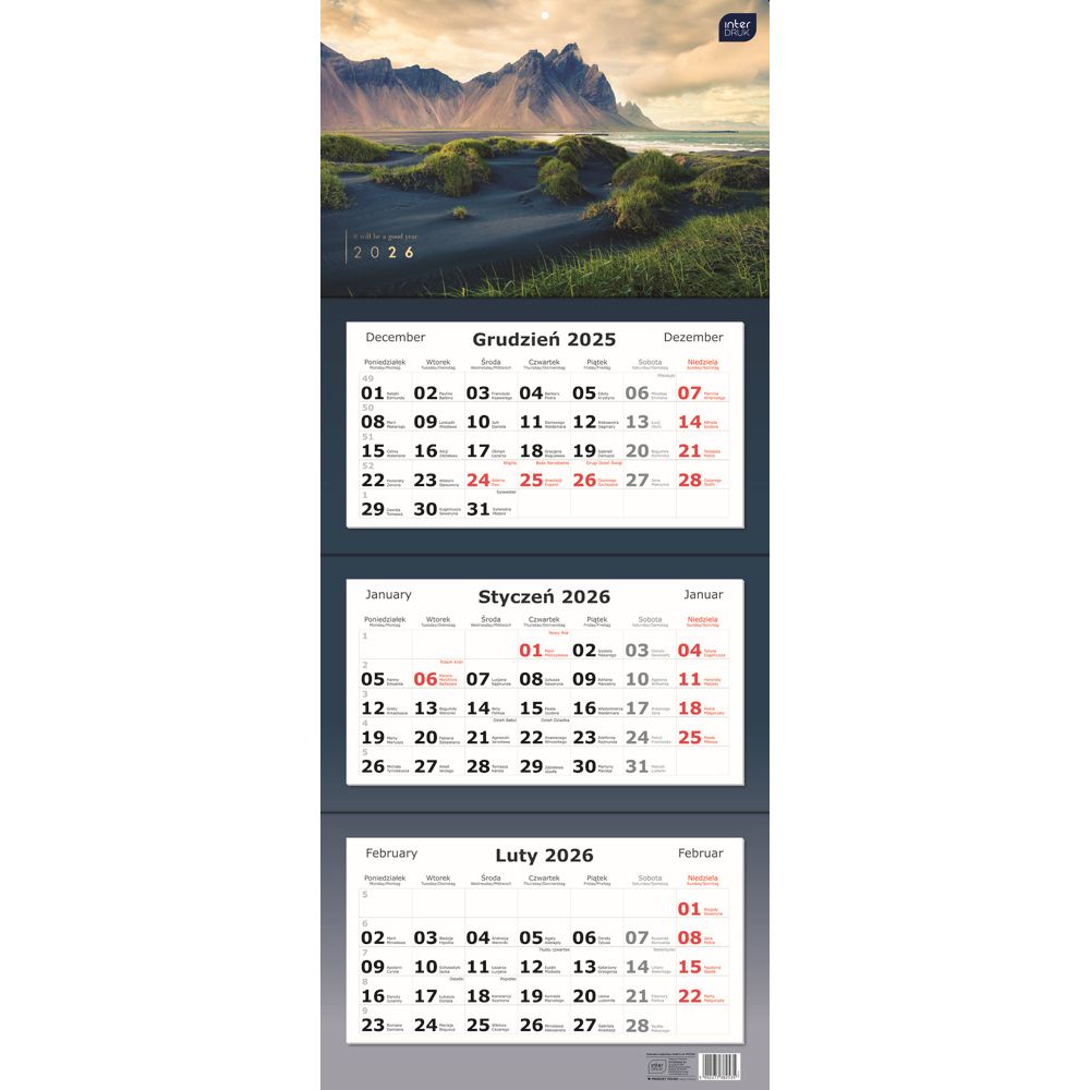 Kalendarz ścienny TRÓJDZIELNY 825mm x 340mm Interdruk (WIDOKI)