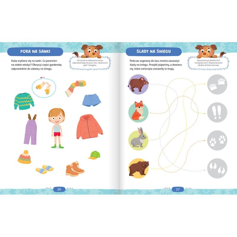 „Elementarz dla 4-latka” opracowany został zgodnie z potrzebami edukacyjnymi dzieci czteroletnich. Materiał zgrupowano, podporządkowując go rytmowi pór roku. Zadania opracowane są w sposób przyjazny dziecku - mają charakter łamigłówek i kolorowanek - i są zgodne z podstawą programową dla przedszkoli. W elementarzu wprowadzone są treści i zagadnienia, które dziecko czteroletnie powinno przyswoić, by móc dalej poszerzać swoją wiedzę i umiejętności. Każdy z czterech działów zamyka quiz, za pomocą którego dziecko może sprawdzić, czego nauczyło się, pracując z tą książką. „Elementarz dla 4-latka” zawiera elementy wiedzy przyrodniczej, edukacji prozdrowotnej, zadania inspirujące do rozmów o bezpieczeństwie, zasady dobrego wychowania i współdziałania w grupie, nawiązania do polskich świąt i tradycji, materiały zachęcające do rozmowy o emocjach i radzeniu sobie z nimi, zabawy grafomotoryczne rozwijające spostrzegawczość oraz przygotowujące do nauki pisania i liczenia, a także wiersze, zagadki, piosenki dostosowane do wieku dziecka. Zabawę z książką urozmaicają: zestaw naklejek do wyklejenia w zadaniach oraz proste tematyczne wycinanki. „Elementarz dla 4-latka” to książka, która wspiera przedszkolaka w jego harmonijnym i naturalnym rozwoju. Rok wydania: 2025 Przedział wiekowy: 4-6 lat Oprawa: miękka Format: 21 x 27 cm; ilustracje barwne, uszlachetniona okładka ISBN: 978-83-8374-121-5 EAN: 9788383741215 Stron: 128 + 4 arkusze z naklejkami Opracowanie: Agata Kaczyńska Producent: Wydawnictwo Aksjomat sp. z o.o, ul. Lindego 7C, 30-148 Kraków, e-mail : marketing@aksjomat.com, tel.12 633 70 22 Produkt ma ZNAK CE, Kraj pochodzenia: Polska OSTRZEŻENIE! Nieodpowiednie dla dzieci poniżej 3 lat. Książka zawiera drobne elementy. Do zabawy pod nadzorem osoby dorosłej.