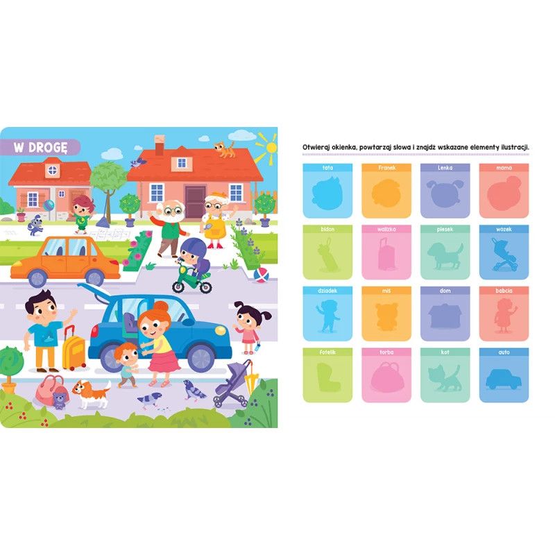 Książka dla dzieci W podróży. Książeczka z okienkami. 100 okienek - 100 słów Aksjomat