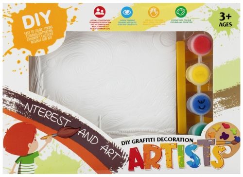 Zalety produktu: Zestaw kreatywny do malowania od MEGA CREATIVE to idealny wybór dla małych artystów, którzy lubią tworzyć i odkrywać świat kolorów. W komplecie znajdują się farby, pędzelki oraz dodatkowe akcesoria, które pozwalają na rozwijanie talentu plastycznego i eksperymentowanie z różnymi technikami. Cechy produktu: Rozwija wyobraźnię i zdolności artystyczne. Kompletny zestaw wszystko, co potrzebne do malowania. Kolorowe farby i praktyczne akcesoria. Zestaw sprawdzi się zarówno w domu, jak i w przedszkolu czy szkole, zapewniając godziny twórczej i radosnej zabawy. Zawartość zestawu: 1x sztaluga, 1x forma z gipsu do malowania, 1x farbki mix kolor, 1x pędzelek. Całość wykonana z plastiku, gipsu i tworzywa sztucznego. Wymiary/waga/baterie: wymiary produktu-forma (dł. x wys. x gł.) {cm}11x13x1, waga produktu (kg.) 0,14 kg. Wymiary opakowania (dł. x wys. x gł.) {cm} 21x4x15, waga produktu w opakowaniu (kg.) 0,17 kg. Nie wymaga zasilania bateriami. Przeznaczony dla dzieci w wieku 3+. Pakowany w kartonik. Pakowanie zbiorcze 60/120 szt.
