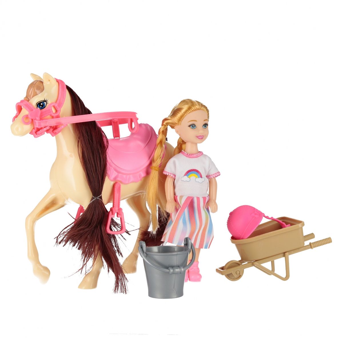 Zalety produktu: laleczka posiada ruchome ręce oraz nogi , długie włosy splecione w 2 warkocze, koń posiada długą grzywę i ogon do czesania Dla prawdziwej fanki lalek - nigdy dość. W myśl tej zasady warto sięgnąć po laleczkę od MEGA CREATIVE! Lalka zmieści się nawet do małej torebki, dlatego będzie idealna jako towarzysz podróży! Zawartość zestawu: lalka w ubranku, koń, szczotka do grzywy konia, kask jeździecki, wiadro, taczki, akcesoria do pielęgnacji Konika. Wymiary/waga/baterie: wymiary produktu (dł. x wys. x gł.) [cm]: koń-13x16x5, laleczka (wys.): 15 cm, wymiary opakowania (dł. x wys. x gł.) [cm]: 35x23x8, waga produktu bez opakowania [kg]: 0,20 kg, waga produktu w opakowaniu [kg]: 0,33 kg, nie wymaga zasilania bateriami. Produkt przeznaczony dla dzieci w wieku: 3+. Produkt pakowany w kartonik z okienkiem. W kartonie zbiorczym po 18/36 szt.