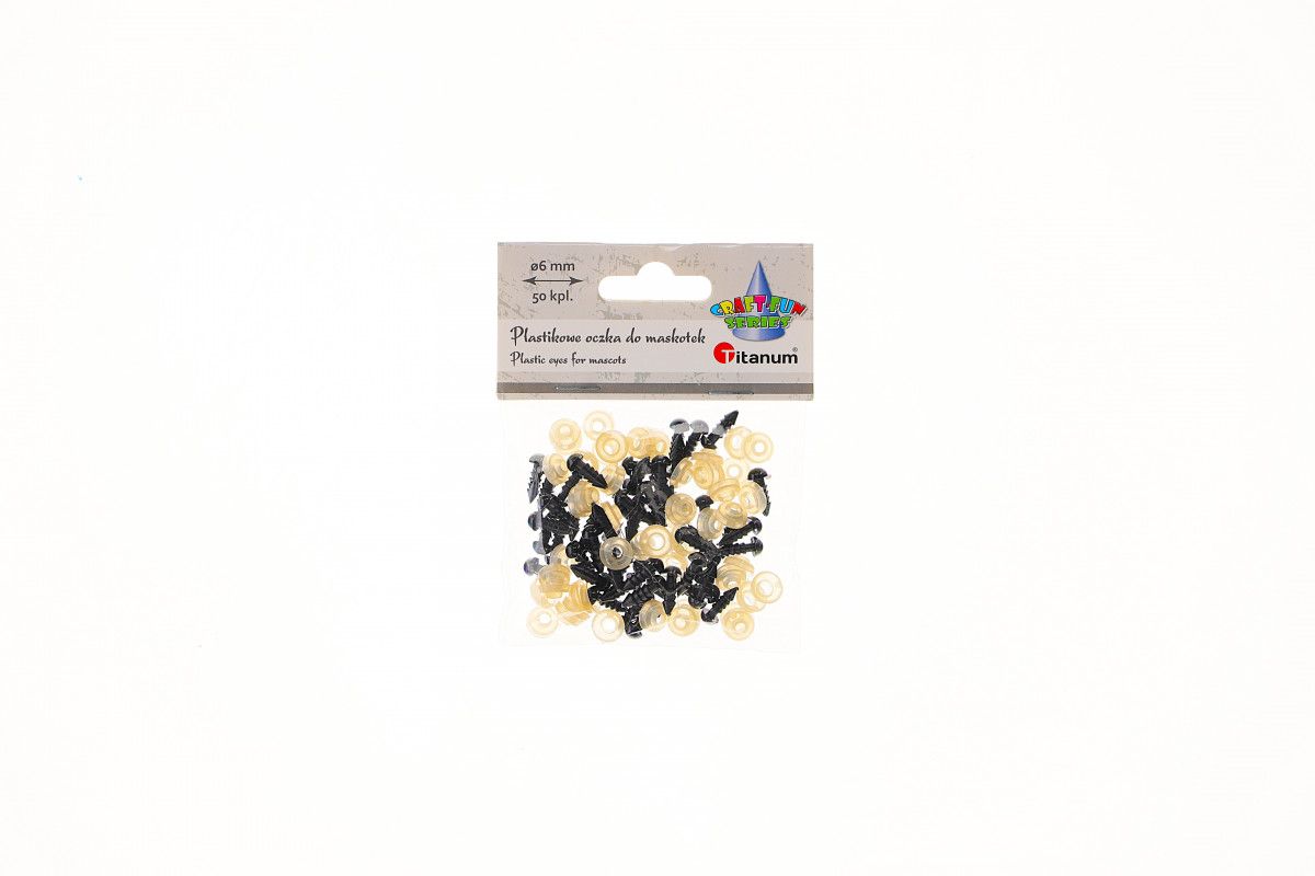 Oczy do maskotek, czarne, średnica 6 mm, z mocowaniem za pomocą zapinki. 50 kompletów.