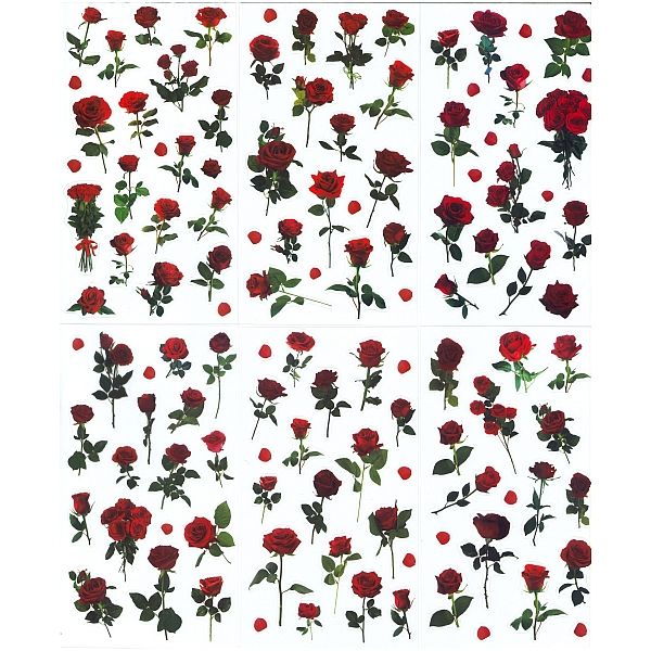 Naklejki foliowe, wzór: róże, mix wzorów i rozmiarów, 6 plansz.