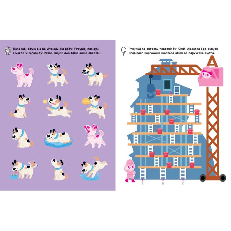 Lubisz aktywizujące łamigłówki z naklejkami? Jeśli tak, to zapraszamy do zabawy z tą książką. W środku znajdziesz zadania do wykonania z użyciem ponad 60 naklejek: labirynty, łączenia punktów, wyszukiwanki, plątaniny, kolorowanki i inne rozwijające zabawy dla dzieci. Widoczne w okienku okładki, przyjemne w dotyku, wypukłe naklejki to specjalny dodatek. Wykorzystaj je w dowolny sposób, na przykład do ozdobienia tej książki lub do dekoracji czegoś innego. Baw się, rozwiązuj łamigłówki, naklejaj naklejki i rozwijaj wyobraźnię!