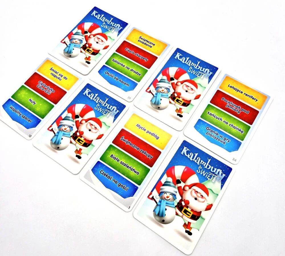 „Kalambury Święta” to nie tylko wspaniały sposób na integrację, ale także idealny prezent, który sprawi radość każdemu, kto kocha święta. Zagraj w gronie rodzinnym i ciesz się świątecznym nastrojem przy wspólnej zabawie!