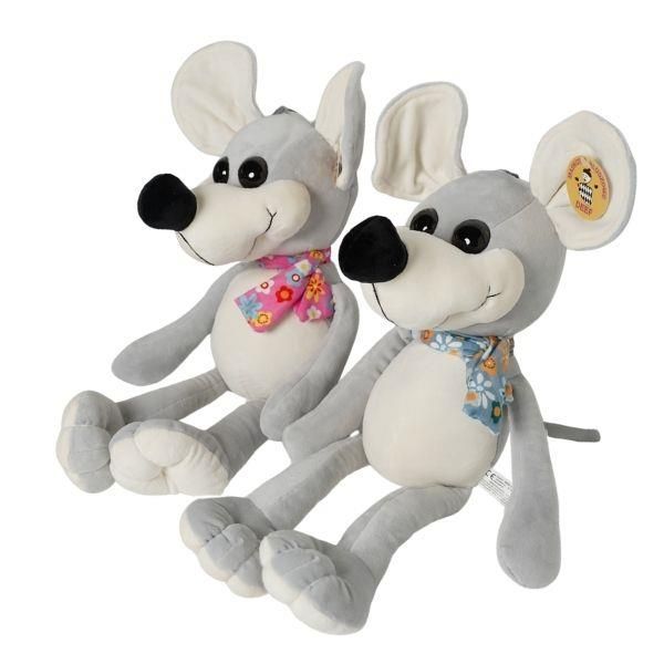 Urocza, szara myszka z kolorowym szaliczkiem i wielkimi uszkami, idealnie nadaje się do zabawy i przytulania. Jest niezwykle przyjemna w dotyku i wypełniona miękkim pluszem. Do główki maskotki przyszyty został dyskretny sznureczek, umożliwiający powieszenie myszki w dowolnym miejscu. Zabawka będzie pięknie prezentować się w pokoju. To idealny pomysł na prezent!