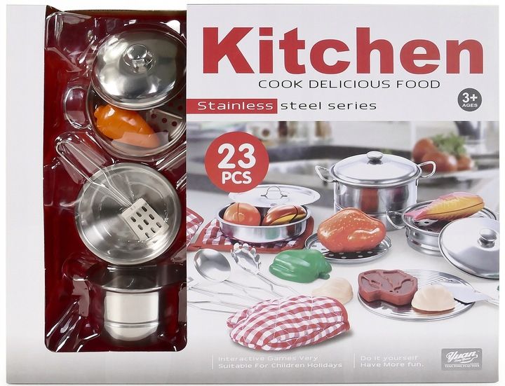 ZESTAW KUCHENNY NACZYŃ GARNKÓW + DODATKI dla dzieci METALOWE NACZYNIA 23EL