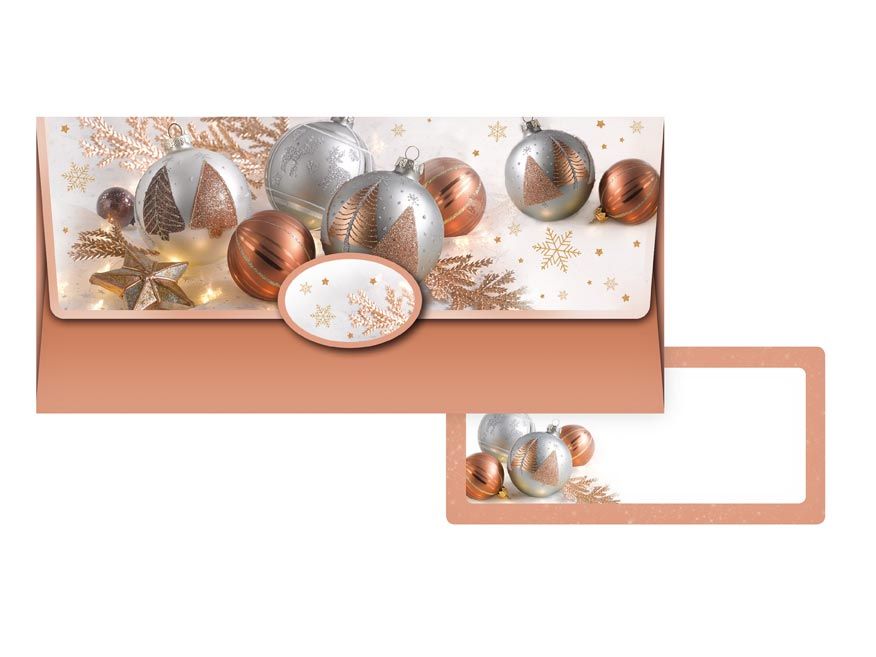 Koperta podarunkowa. Wewnątrz znajduje się ozdobna karteczka, na której można napisać życzenia. Każda koperta jest zapakowana osobno w folię z zawieszką euro.