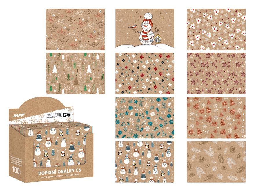 Świąteczne koperty z nadrukiem, C6 (KRAFT).