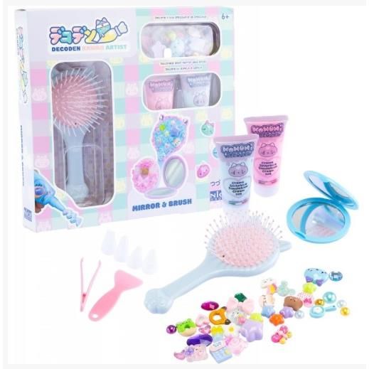 Zestaw MOMOMI Mirror & Brush rozwija kreatywność i zdolności manualne. Dzięki kremowi Decoden możesz tworzyć fantazyjne zdobienia na przenośnym lusterku oraz pędzelku. Różnorodne końcówki pozwalają uzyskać ciekawe kształty, a dołączone akcesoria – szpatułka i szczypce – ułatwiają precyzyjne nakładanie dekoracji.